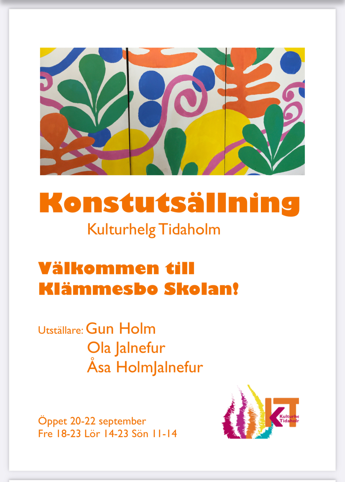 20-22 sept Kulturhelg Tidaholm, hemma i Klämmesbo Skola